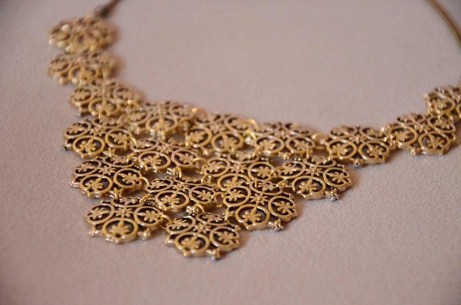 Braided pearls in marshmallow-like colors. I've pair the pearls with ribbon so it feels a little like a bib necklace. The flower plate was actually an earring but, my friend lost the other side of it. So, i'm re-using one side of the earring and turn it into a candy necklace. hope you like it :)